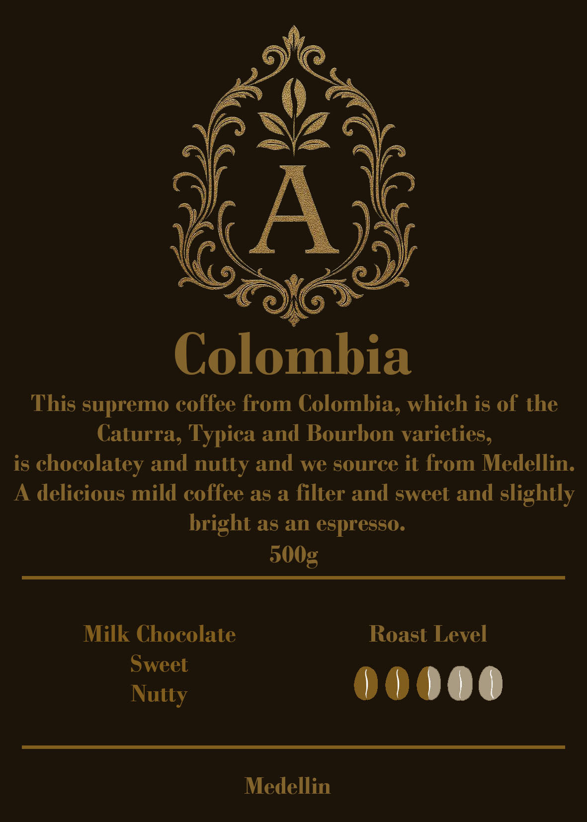 This supremo coffee from Colombia, which is of the Caturra, Typica and Bourbon varieties, is chocolatey and nutty and we source it from Medellin. A delicious mild coffee as a filter and sweet and slightly bright as an espresso.